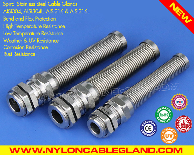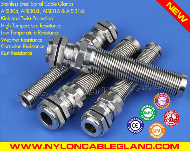 با مزایای مقاومت در برابر ضربه بالا و دامنه بستن گسترده، مقاومت در برابر حرارت بالا و پایین و مقاومت در برابر آب و هوا، غدد کابل غده کابل مارپیچی متریک ضد آب IP68 M12~M50 از جنس استنلس استیل نوع 304/316/316L با محافظ ضد پیچ خوردگی و خمش همراه با یک دستگاه اضافی فنر محافظ مارپیچ و دارای توانایی مقاومت شیمیایی، مقاومت در برابر خوردگی و مقاومت در برابر حرارت است و همچنین دارای توانایی استحکام کششی بالا، استحکام بالا، مقاومت در برابر آب خوب، حفاظت خمشی عالی و زمان خدمات طولانی است.