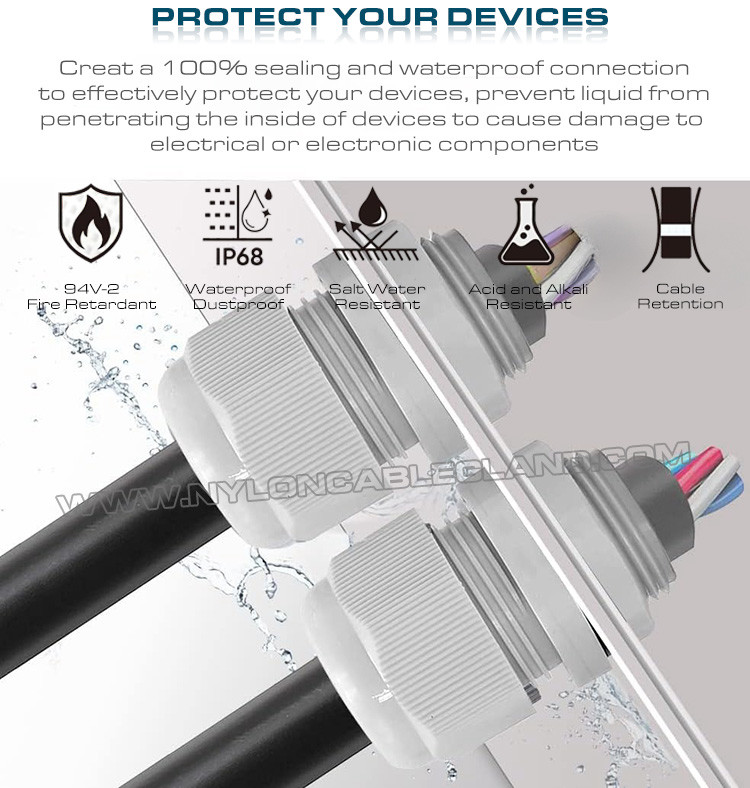 [کیفیت برتر]غدد کابل ما از ماده پلی آمید 66 با مقاومت کششی بالا ساخته شده اند که به طور موثر در برابر اشعه UV، آب و هوا، رطوبت، شعله، آب، اسید، قلی، الکلمحافظت طولانی مدت برای برنامه های داخلی و خارجی شما فراهم می کند.