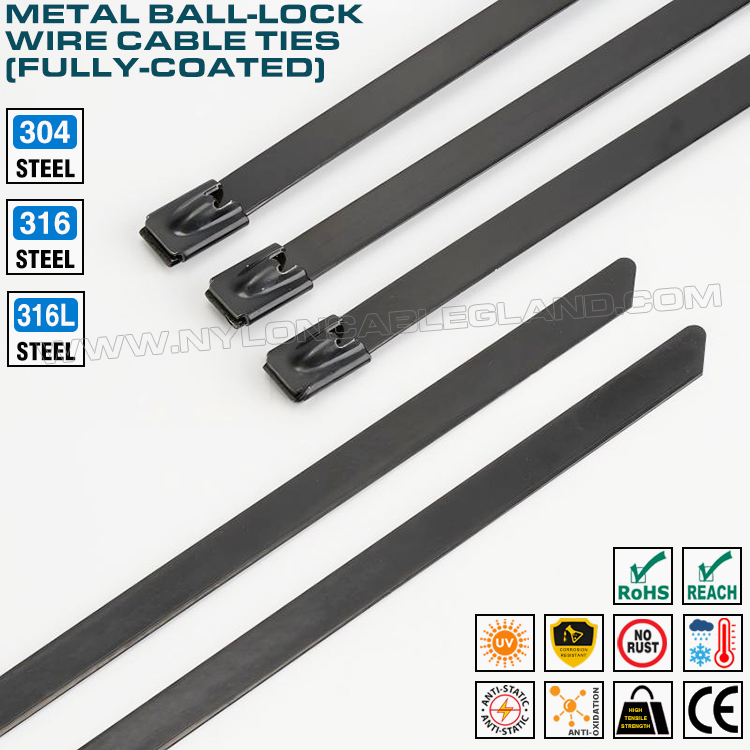 بندهای کابل استیل ضد زنگ با روکش کامل، نوعی بست با قفل توپی و پوشش کامل اپوکسی (پلی استر یا نایلون 11) هستند. سگک فلزی و تسمه از استیل ضد زنگ 304، 316 یا 316L ساخته شده اند و کل سطح با یک لایه مواد اپوکسی (پلی استر یا نایلون 11) پوشانده شده است. این پوشش می تواند محافظت بیشتری را برای بندهای کابل فراهم کند و آنها را در برابر خوردگی، سایش و زیبایی بیشتر مقاوم تر کند. آنها به طور گسترده در زمینه های سیستم های قدرت، صنایع شیمیایی، دریایی، نفت، ماشین آلات، لوله ها، مجراها، باغ ها، مزارع و غیره برای تثبیت و اتصال استفاده می شوند.